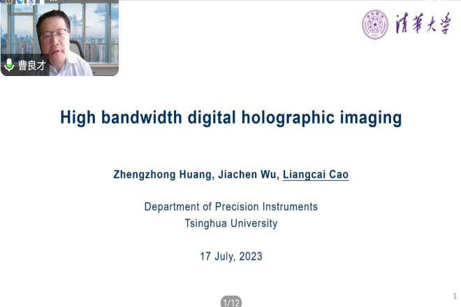 7月17日下午,清华大学曹良才教授应邀线上作了题为“高通量高分辨率数字全息成像技术”的学术报告。报告会由williamhill英国官网副经理(主持工作)杨国锋教授主持,williamhill英国官网的部分教师与光工研究生聆听了报告。