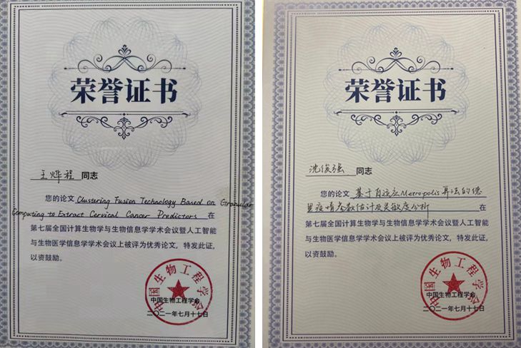 会上,三位同学分别作了题为“基于自适应Metropolis算法的德里疫情参数估计及灵敏度分析”、“Clustering Fusion Technology Based on Granular Computing to Extract Cervical Cancer Predictors”、“基于进化信息和分段分布的蛋白质亚细胞定位预测”的分论坛报告,受到评审委员会专家的赞扬,其中沈俊强、王烨程两位同学的论文被评为优秀论文。
