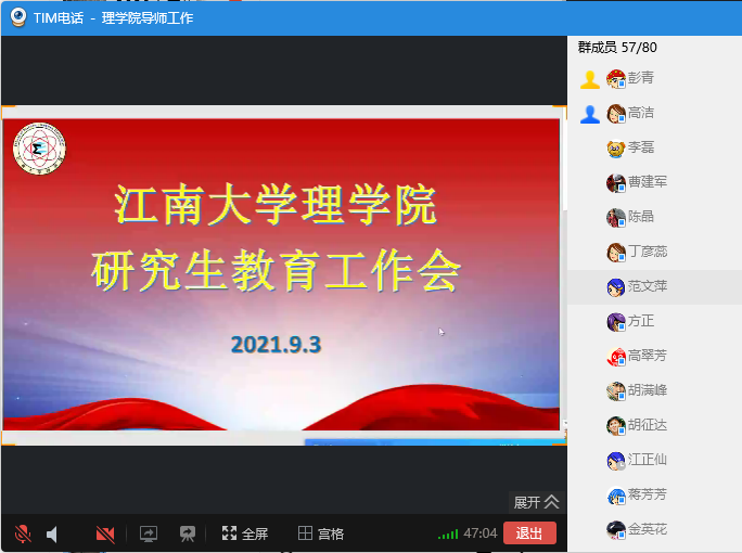 最后,高洁副经理对近期培养环节研究生与指导教师互选、研究生个人培养计划制定、校外单位专业实践计划的调整、推荐免试研究生的招收等工作做了布置和要求,并对导师和任课教师的辛勤付出给予了肯定和感谢!