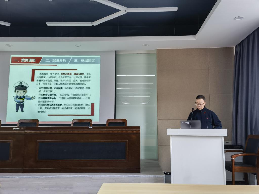 公司党委纪检委员、副经理席曦以《时刻绷紧纪律弦 莫让酒驾毁前程》为题,结合中央纪委国家监委、无锡市纪委监委、纪检监察机关通报的部分酒驾醉驾案例,强调了纪检监察机关对此类问题“零容忍”、重拳出击、严肃查处的鲜明态度。他对酒驾进行了纪法分析,厘清了什么是酒驾醉驾,以及酒后驾车将产生的严重后果,从维护公共安全、体现监督常在两个方面阐明了处分从严的原因,并进一步明晰了酒后驾车违法的经济成本、自由成本、职场成本、家庭和社会成本等内容,为与会教职员工上了一堂生动的酒驾醉驾警示教育课。