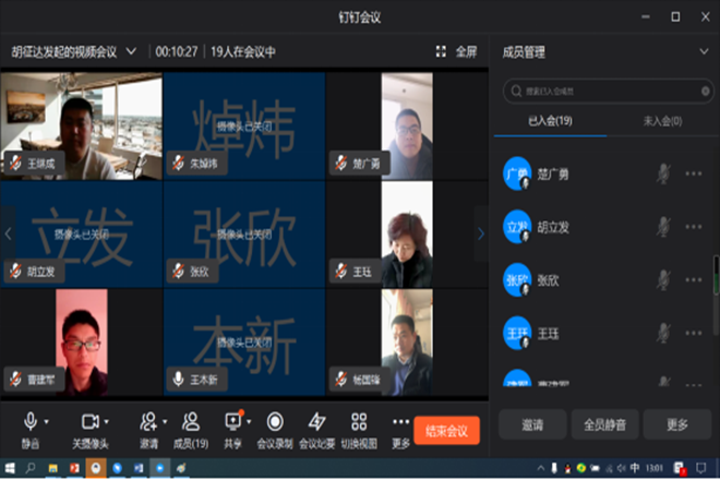本次会议贯彻公司“非必要不进校”的疫情防控政策,采用钉钉线上会议模式举行。会议首先进行了专题政治理论学习,集中观看了建党100周年特别节目《榜样6》选集—《陈定昌:导弹专家 为国铸盾》,学习了陈定昌院士“百折不回,奋勇前进”献身于国防的感人事迹。胡征达指出,陈院士毕生为国铸盾,为强国、强军、富民、复兴的中国梦而奋斗终身。我们虽然不能人人都能像陈院士那样为国创造瞩目成就,但是陈院士的那种坚定的理想信念,值得支部全体党员学习。唯有坚定理想信念,才能专注于事业本身,不怕苦,不计较得失,才能守得住初心,担得了使命。接着,胡征达代表支部班子汇报了2021年度得党支部工作总结情况,通报了支部班子的问题查摆和相应整改措施。随后,全员就2021年以来,在政治思想、学习工作、纪律作风等方面,结合专业特色开展了严肃认真的自我批评。同时支部党员间也进行了客观公正的相互批评,并且虚心接受互相的批评意见和建议。