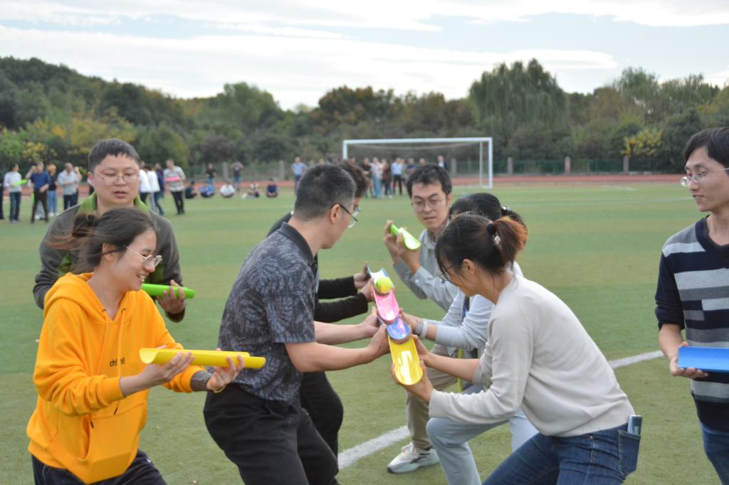 首先全体教职工聚拢在院旗下照了一个全家福,然后在分工会体育委员唐磊清的带领下进行了比赛前的热身活动,第一个项目是“持拍托球跑”,这是一个考验团队接力协作的项目,6个系部代表队你追我赶、奋勇争先,完成了比赛,大学数学部获得第一;第二个项目是“能量传输”,它考验着老师们的敏捷度、控制力和团队协作,应用物理系获得这个项目的第一名;运动会的高潮出现在最后的“拔河比赛”中,参赛运动员分列长绳两边力拔泰山、互不相让,其他老师呐喊、加油,这是真正的全员参与,凝结了全体老师的力量,经过3轮的较量,行政-物理实验联队获得冠军。老师们全情投入、放飞心情的一个半小时很快地过去了,趣味运动会在大家的欢声笑语中圆满结束,。