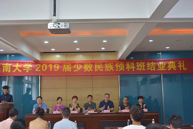 下午四时,典礼在雄壮的国歌声中正式拉开序幕,全体师生高唱国歌。张光生宣读2019届少数民族预科生结业文件;陈国庆宣读优秀结业生表彰决定。