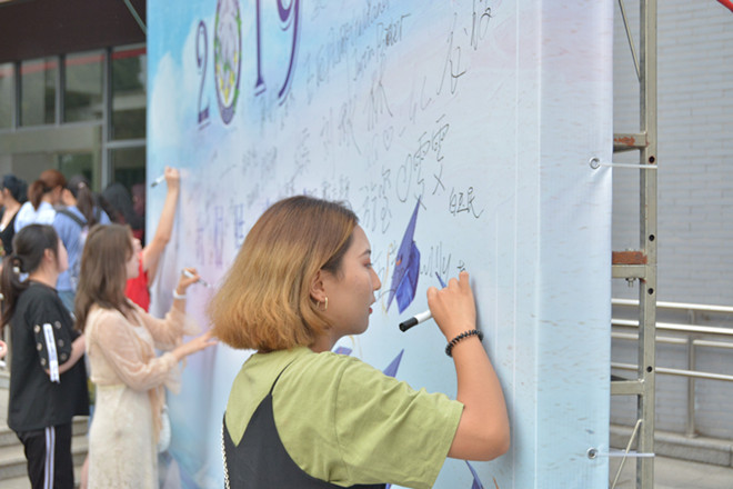 典礼场外,悬挂“热烈祝贺2019届少数民族预科生顺利结业”横幅,精心布置了结业签名墙,供师生签名及合影留恋;典礼会场,音乐舒缓,共同营造了简朴浓厚的结业氛围。