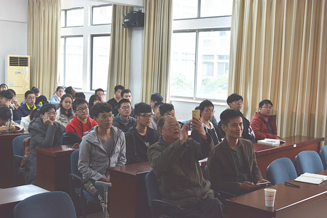 在同学们的热烈欢迎下,李老向同学们娓娓讲述了自己的一生。他从旧中国丧权辱国讲到日本侵华战争,再讲到新中国成立,声情并茂,情绪激昂。谈及过去的屈辱时,他眼里含泪;谈及日军的残暴时,他义愤填膺,一个个故事如数家珍般托出,这些故事渐渐沉淀在同学们心底,让同学们感受到个人命运是深切的与国家命运、民族命运联系起来的,面对茫茫时代之潮,奋斗是每个人的责任。随着新中国成立,李老进入高校任教,开始了数十年的教育生涯,奉献了自己的一生。李老总结了自己一生的经历,鼓励同学们努力学习,提升自我,奉献社会,他强调,爱国是我们的第一目标,也是第一根基,不谈爱国,谈什么都没有意义。而在这个新时代,作为新时代的青年,不忘初心、牢记使命,履职尽责,砥砺前行是国家与社会对每个年轻人的厚望。