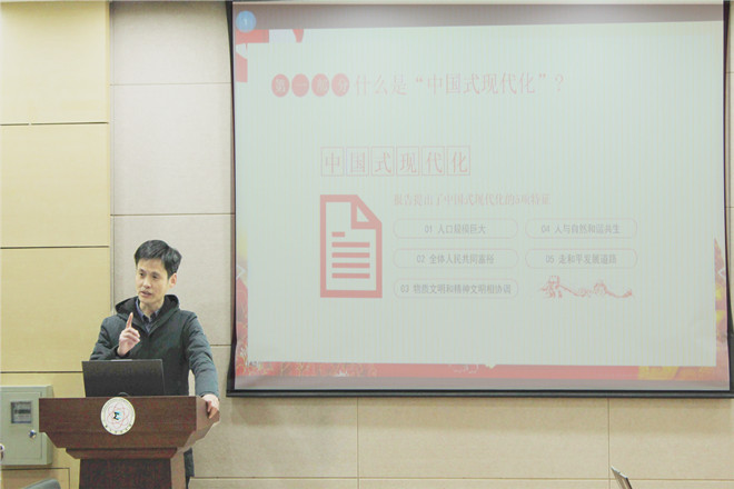 活动中,陈周紧紧围绕主题从五个部分进行交流,阐述了中国式现代化的内涵,并对中国式现代化要干什么、怎么干这一问题深入讲解。陈周指出,中国的发展正如大海行船,中国共产党就是掌舵人,坚持党的领导是重中之重。在讲解过程中,陈周结合当下实际进行阐述,发人深省,最后点明新时代青年的使命与担当,鼓励同学们担起时代的责任。