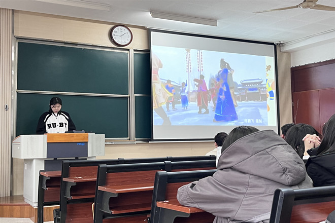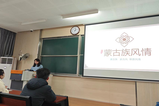 随后,来自锡伯族、纳西族、亿佬族、蒙古族等民族的员工代表依次上台做了专题介绍,共同为大家献上一场激情饱满的饕餮盛宴。他们围绕民族历史起源、语言文字、民族服饰、民风民俗,民食民居以及民族艺术等方面,以ppt、视频、音乐和服装展示等形式,向同学们进行了生动而精彩的讲解,同学们听得津津有味。