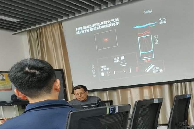会议开始,主持人简单介绍了胡立发老师。接着,胡立发老师以“激光通信及自适应光学技术的研究”为讨论话题,从“研究方向”“研究背景”“应用领域”和“其他”四个方面,首先向参会同学介绍了光学技术先进研究方向“光通信”和“自适应光学和液晶光学”的原理和应用优势,接着普及了目前国际上相关技术在卫星通信等领域的应用,并讲解了“大气扰动”相关原理,通过图片展示了团队开发做出的探测器及其他设备,期间胡老师分享了个人研究的工作经历和成果,提到了光科系其他教授在研究上的学术成就,让同学们感受到了公司浓厚的学术氛围和扎实的教学团队力量。
