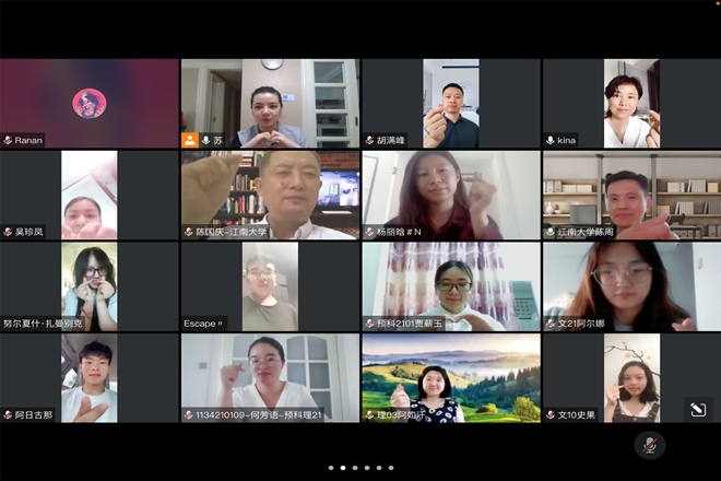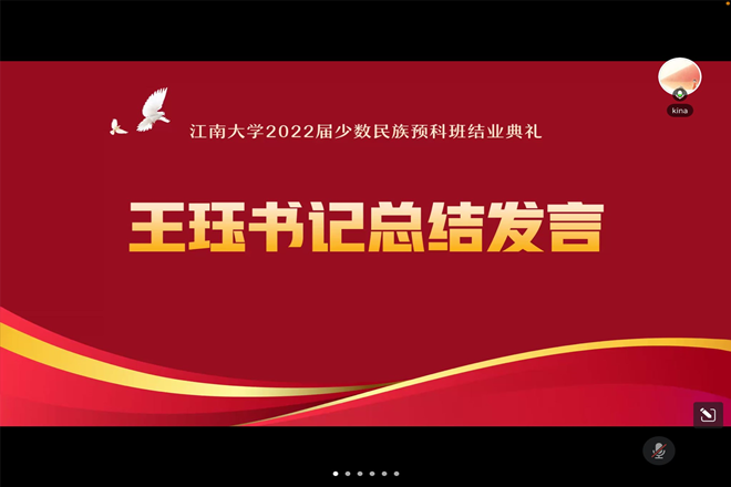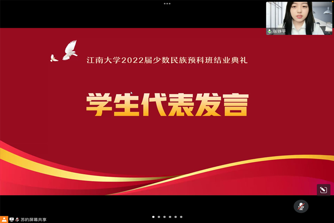 典礼在雄壮的国歌声中正式拉开序幕,全体师生高唱国歌。胡满峰宣读2022届少数民族预科生结业文件;陈国庆宣读优秀结业生表彰决定。同学们的名字一一呈现在屏幕中,通过与同学们线上互动,在他们的脸上洋溢着兴奋、自豪和对美好未来的憧憬之情。