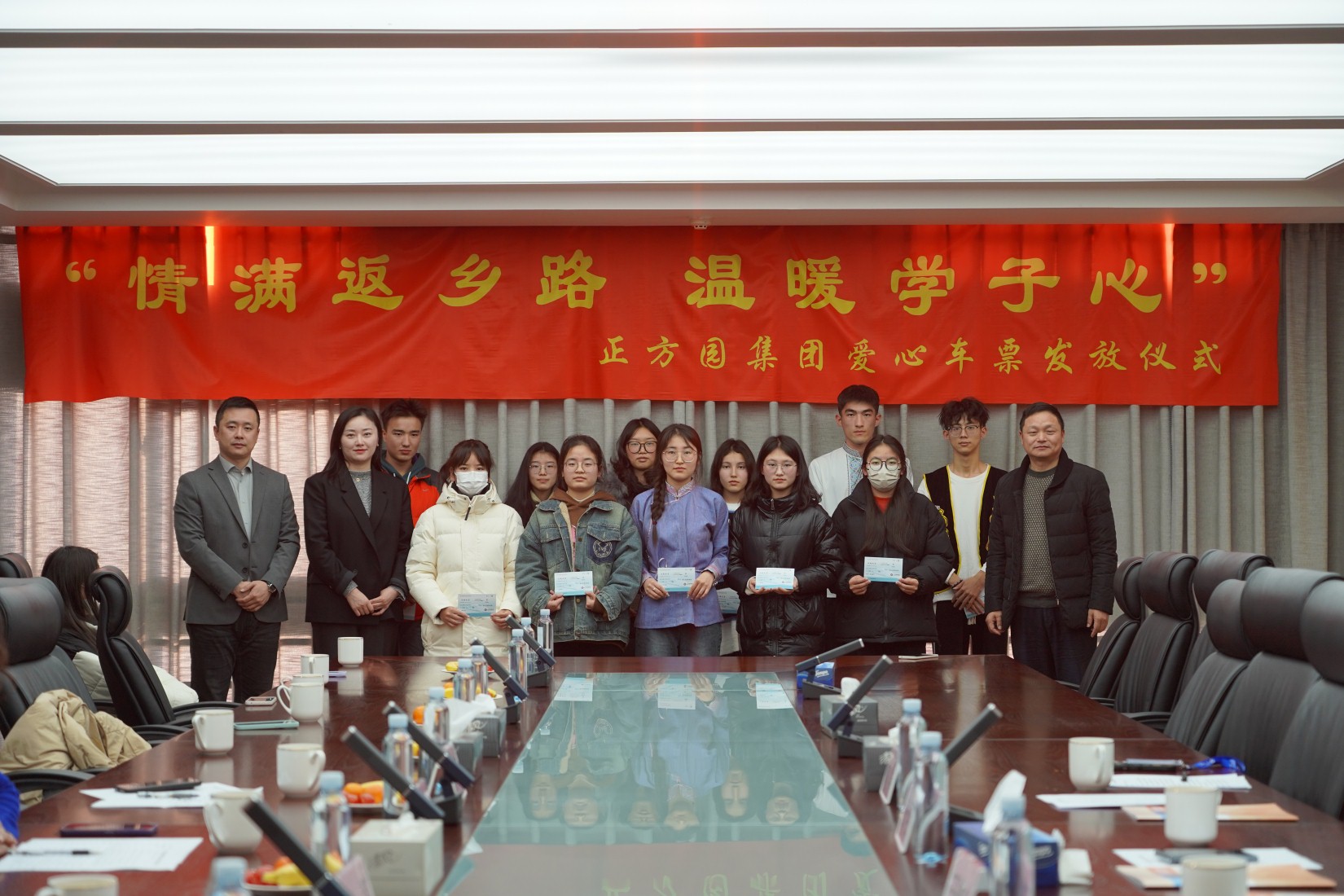 12月20日下午,“情满返乡路,温暖学子心”江苏正方园集团爱心车票发放仪式在正方园科技大厦举行。正方园建设集团有限公司副总经理王明生、综合管理部经理王树全、董事长助理沈玲,公司党委书记王珏、党委副书记兼副经理董小平、辅导员苏丹出席活动。2023级少数民族预科生代表参加活动。活动由王树全主持。