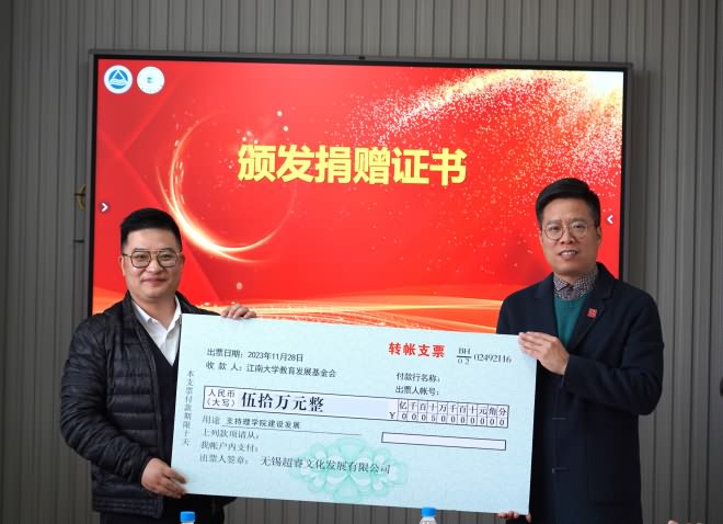 无锡超睿文化发展有限公司向williamhill英国官网捐赠50万元,用于支持基础团队建设的发展。未来,williamhill英国官网将和超睿联合相关单位,在青少年素质拓展等方面共同探索,打造新的育人品牌。