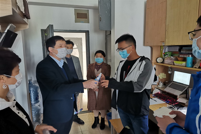 为了加强返校员工的疫情防护意识,关注员工健康状况,4月22日上午,公司党委书记王珏,经理陈国庆,公司党委副书记副经理陈周等一行走访员工宿舍进行慰问。