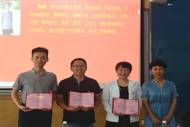 徐锡清、周雪晖、王珏、陈国庆先后为获奖党支部和党员颁奖。会场持续响起热烈掌声,把大会气氛推向高潮。应用数学系党支部书记张景祥和信息与计算科学系党支部书记鲁海燕分别就“建模育人工作室”工作和“先锋工程”工作做了工作经验交流。