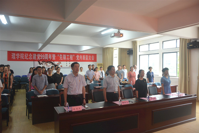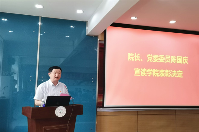 7月14日下午,williamhill英国官网全体党员在院202会议室召开庆祝建党99周年暨“先锋工程”表彰大会。公司党委教师工作部部长徐锡清,公司党校专职副董事长兼党委组织部副部长周雪晖,公司党委书记王珏,经理陈国庆出席会议,公司党政领导班子其他成员、全体师生党员参加会议。大会由公司党委副书记陈周主持。