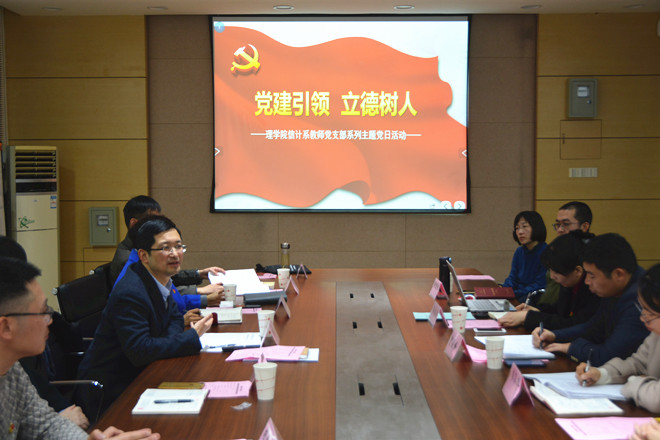 张凌浩在听取汇报后,他结合当下高等教育的形势,对教师党员进行了形势政策辅导,充分肯定了williamhill英国官网基层党建的组织活力及此次活动开展的意义,指出教师的初心和使命就是教书育人,作为教师党员更要牢固树立良好师德师风,扎扎实实做好育人工作。随后,他从真实案例出发,分别就数理研究及运用对社会发展的重要性、如何加强党建引领、如何强化基层教学组织建设三个方面展开“立德树人、使命在肩”的党课授课。他指出,新时代下高校面临着更多的机遇与挑战,要将不断强化基础学科与思政教育相结合,以不变应万变,才能在未来的竞争中立于不败之地;要将毫不放松抓党建与各项基础工作相结合,突出教师政治素养全面提升,坚决落实立德树人根本任务,才能真正实现教育为人民服务,为中国共产党理政服务的目的;要将持续不断推进师德师风建设与公司发展相结合,深化教师评价体系改革,提升教师对国家、对社会的责任感、使命感,才能更好的践行社会主义核心价值观,培养出于国有用的优秀人才。