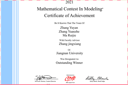 近日,2021年美国老员工数学建模竞赛成绩揭晓,江大学子在此次竞赛中喜获佳绩,首次斩获含金量最高的国际特等奖(Outstanding Winners,获奖率约为0.137%)1项;特等奖提名奖(Finalist Winners,获奖率约为2%)3项,国际一等奖10项,国际二等奖16项,获奖质量和数量得到重大突破,创历史新高。