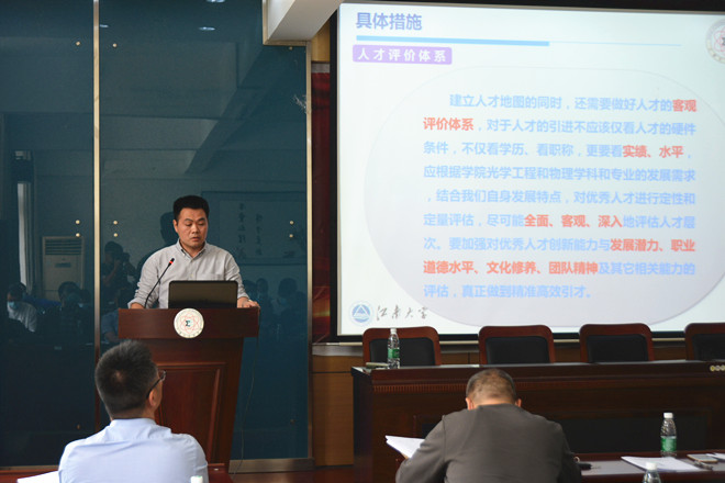 经理助理杨国锋、陈晶依据公司“奋进计划”关于人才引进与培养的规划,分别围绕光学工程及物理、数学学科作公司人才引进规划报告,从公司人才引进目标、具体措施等方面,重点介绍了公司在人才引进方面的主要工作、长期规划以及取得的阶段性成果,并希望全体教师积极行动,共同努力,为公司人才引进和培养工作建言献策。