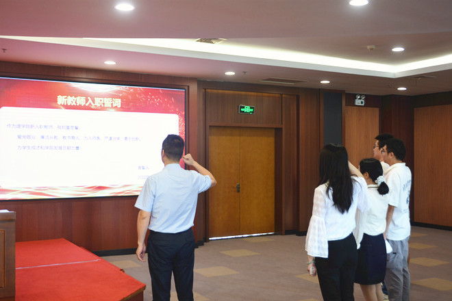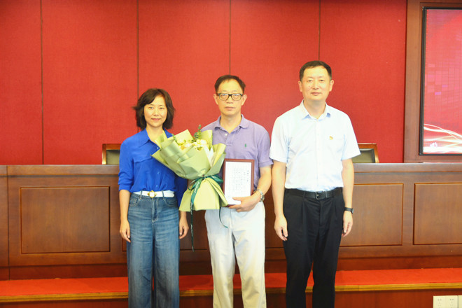 随后,公司为退休老教师举行荣休仪式,为新教师举行入职仪式。公司党委副书记陈周宣读梁修东、刘琪、朱平三位教师荣休词,深深地道出了三位老师几十年来对教学科研、公司发展等做出的贡献,让在场的全体教师深受感动和教育。王珏书记、陈国庆经理分别向三位老师赠送鲜花、颁发荣休证书,并代表公司全体教职工向他们表达了最衷心地感谢和最真诚地祝福,感谢他们立足三尺讲台,践行育人使命,兢兢业业,硕果累累;祝福他们身体健康,生活精彩,常回公司看看,一如既往的关心支持公司的发展。退休教师代表朱平老师发表荣休感言,她回忆往昔,细数着一路走来的点点滴滴,感谢同事们的支持与鼓励;再望今朝,为公司取得的发展、教师获得的成长感到欢心,表达了对公司真诚的祝福和未来发展的热切期盼,希望公司发展越来越好。接下来,王珏书记为新进教师指导老师颁发聘书,由指导老师为新教师佩戴校徽,并在副经理胡满峰的带领下进行庄重宣誓,新进教师孙瑷蕙老师作代表发言,表示将坚持教育初心,秉承育人使命,为公司和公司发展贡献力量。