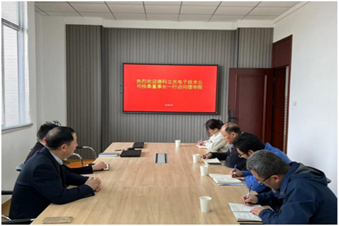 3月7日,无锡德科立光电技术公司桂桑董事长一行四人来访williamhill英国官网,开展产学研学术交流。交流会在钱伟长楼211会议室进行,williamhill英国官网副经理杨国锋(主持工作)、光电系教工支部书记胡征达以及光电系部分教师参加了座谈并作了学术汇报。会议由原williamhill英国官网经理、光电系陈国庆教授主持。