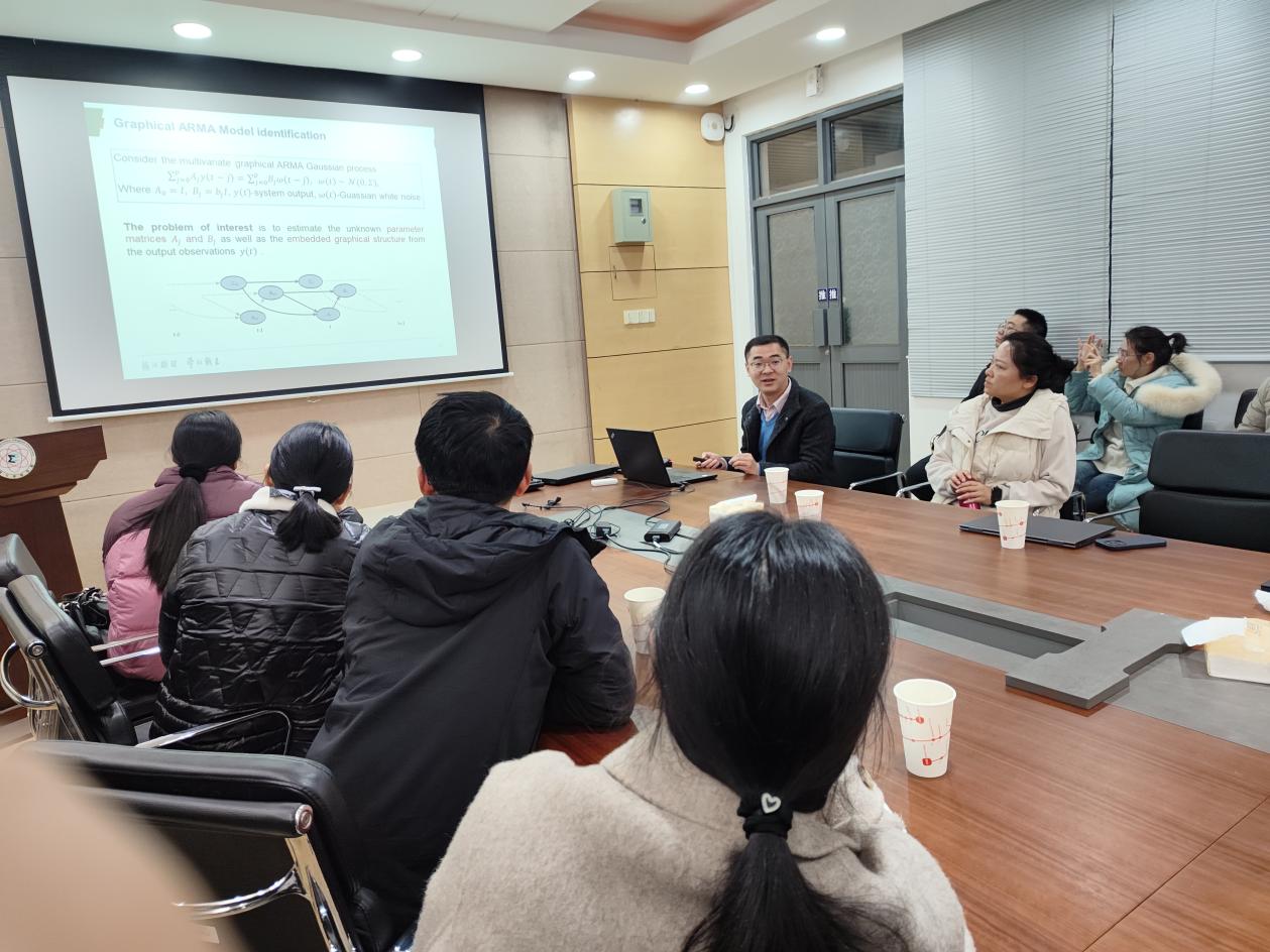 随后,俞成浦教授带来题为《结构化动态系统辨识》的学术报告,主要介绍了在已知拓扑结构先验信息的情形下如何辨识线性网络模型参数和非线性网络模型参数,随后他展示了团队在这方面所做的创新性研究工作,旨在为多智能体集群在对抗环境下的建模工作提供新的解决方案。