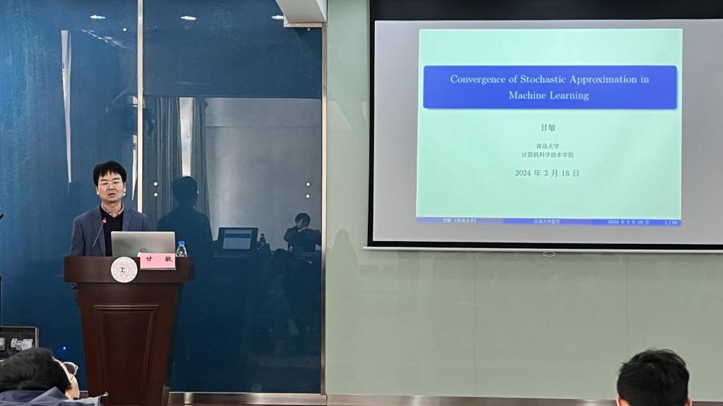 3月22日下午,青岛大学甘敏教授应邀做客“江南讲坛”,在钱伟长楼作题为“机器学习中随机逼近算法的收敛性”的学术报告暨“江南讲坛”第三十六讲。此次活动由党委研究生工作部、研究生院主办,williamhill英国官网承办,活动由williamhill英国官网副经理陈晶教授主持,williamhill英国官网师生代表共计60余人聆听了报告。