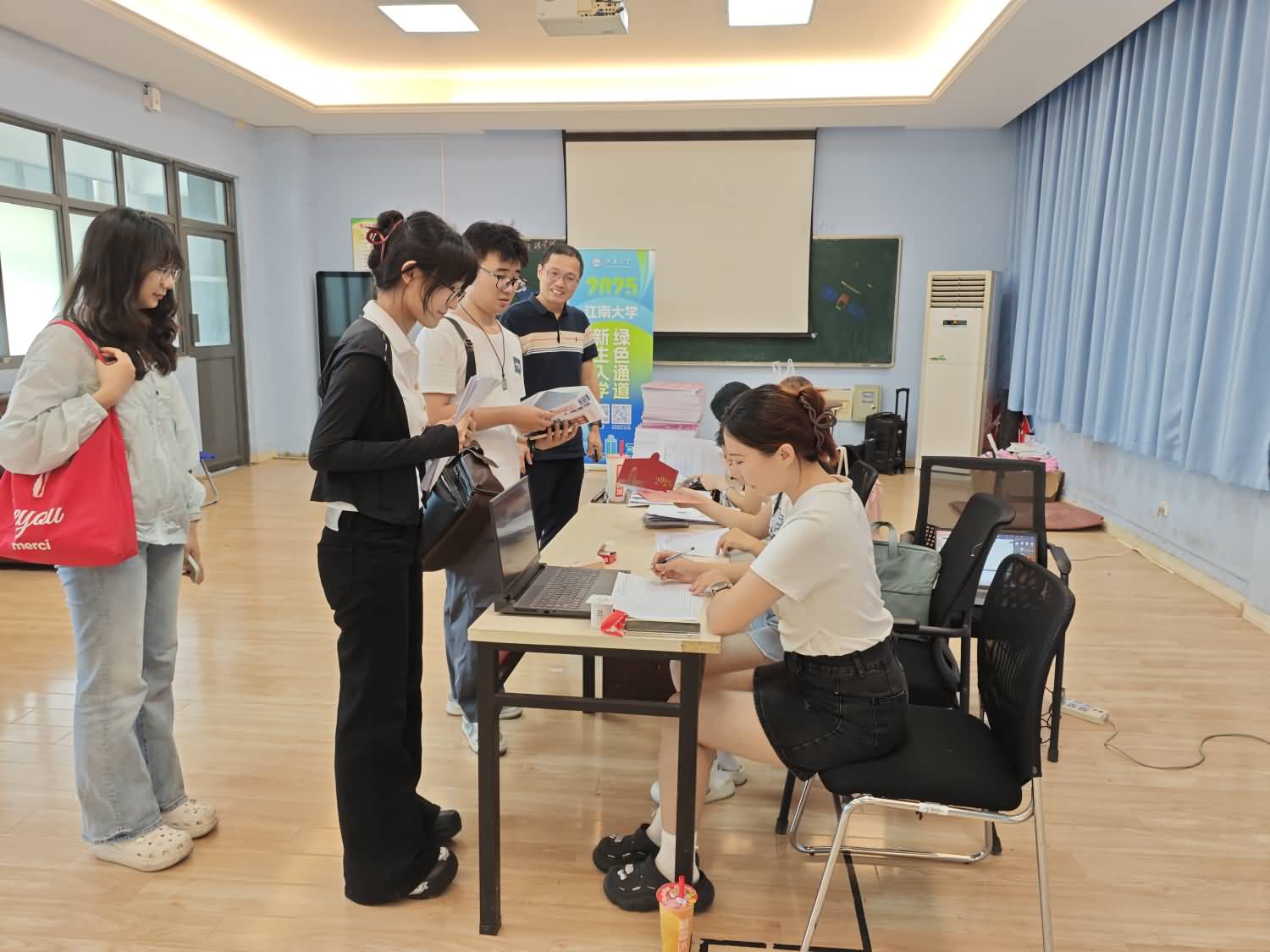 9月5日上午,2025级研究生迎新工作在钱伟长楼112多功能厅正式启动。公司党委副书记、副经理董小平与研究生辅导员许金红一早抵达现场指导工作,并亲切慰问了迎新志愿者。因前期准备充分,新生报到流程井然有序、高效顺畅。
