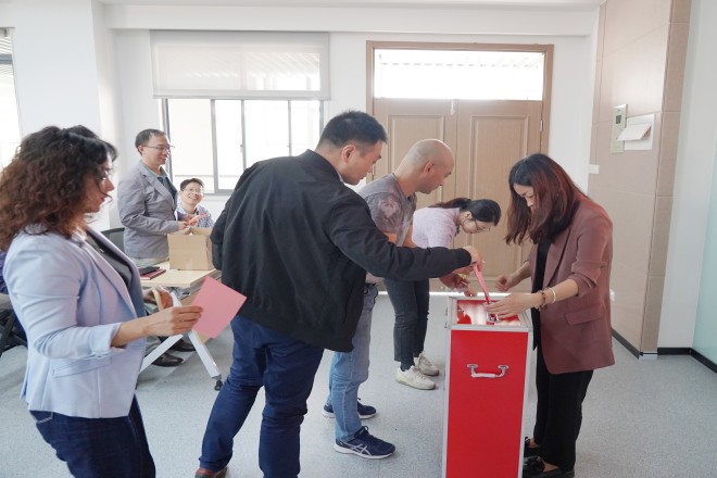会上,由工会主席曹俊峰介绍了公司教代会与工代会代表选举相关工作安排,并通过了《williamhill英国官网教职工代表大会暨工会会员代表大会代表选举办法》,以及监票人和计票人名单。经差额选举,选出了丁彦蕊等57名同志为公司第八届教职工代表大会暨工会会员代表大会代表。