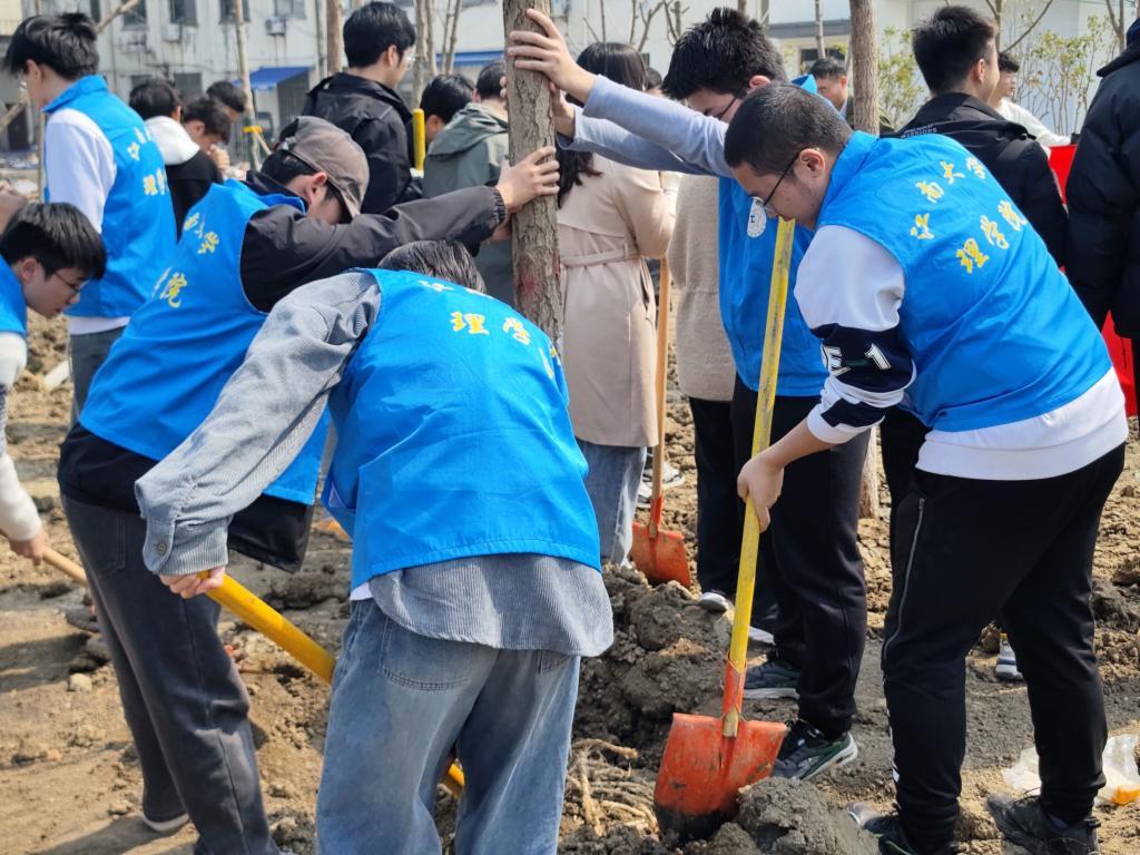 活动现场,大家分工合作,有的负责挖坑培土,有的负责搬运树苗,还有的负责浇水施肥,齐心协力共同为校园增添一抹新绿。