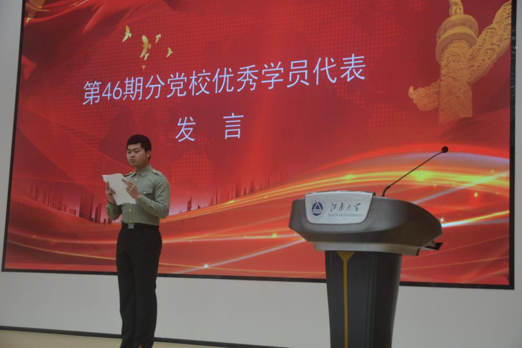 开班仪式在庄严的《国际歌》旋律中拉开帷幕。董小平致开班辞,他对本期联合分党校的顺利开班表示由衷祝贺、对参训学员表示热烈欢迎,同时详细介绍了本次培训班的精心策划和周密安排。他向学员们提出三点希望:一是做到政治进步和全面发展相统一;二是要做到先锋意识和人民情怀相统一;三是要做到理论积累和实践历练相统一。第46期分党校优秀学员代表王明礼,真诚分享了自己的学习历程,并真诚祝愿新一期学员能够顺利完成培训,学有所得。在全体成员的注视下,第46期、47期培训班顺利完成了党旗交接,代表新一期发展对象培训班正式展开。