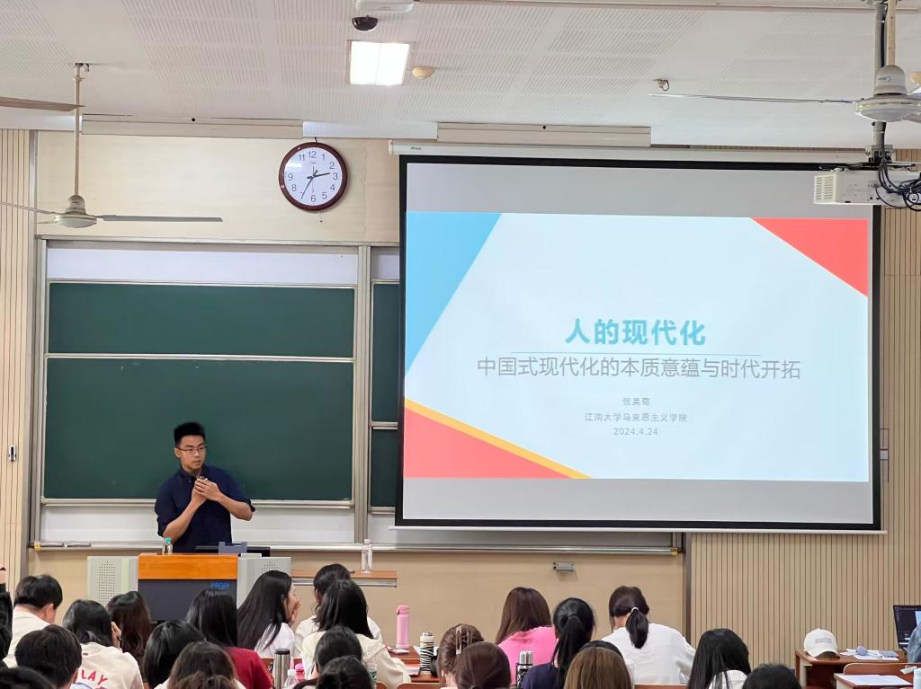 第四讲由马克思主义公司张吴奇主讲,他以《人的现代化:中国式现代化的本质意蕴和时代开拓》为主题,从什么是现代化、中国式现代化的本质意蕴和中国人的现代化之当代开拓等三个方面论述了“中国式现代化”的本质意蕴和时代开拓,强调中国现代化的本质意蕴是以人民为中心,中国式现代化要由现代化的中国人去完成。中国式现代化的建设过程也是人走向高阶现代化的过程,二者相得益彰。