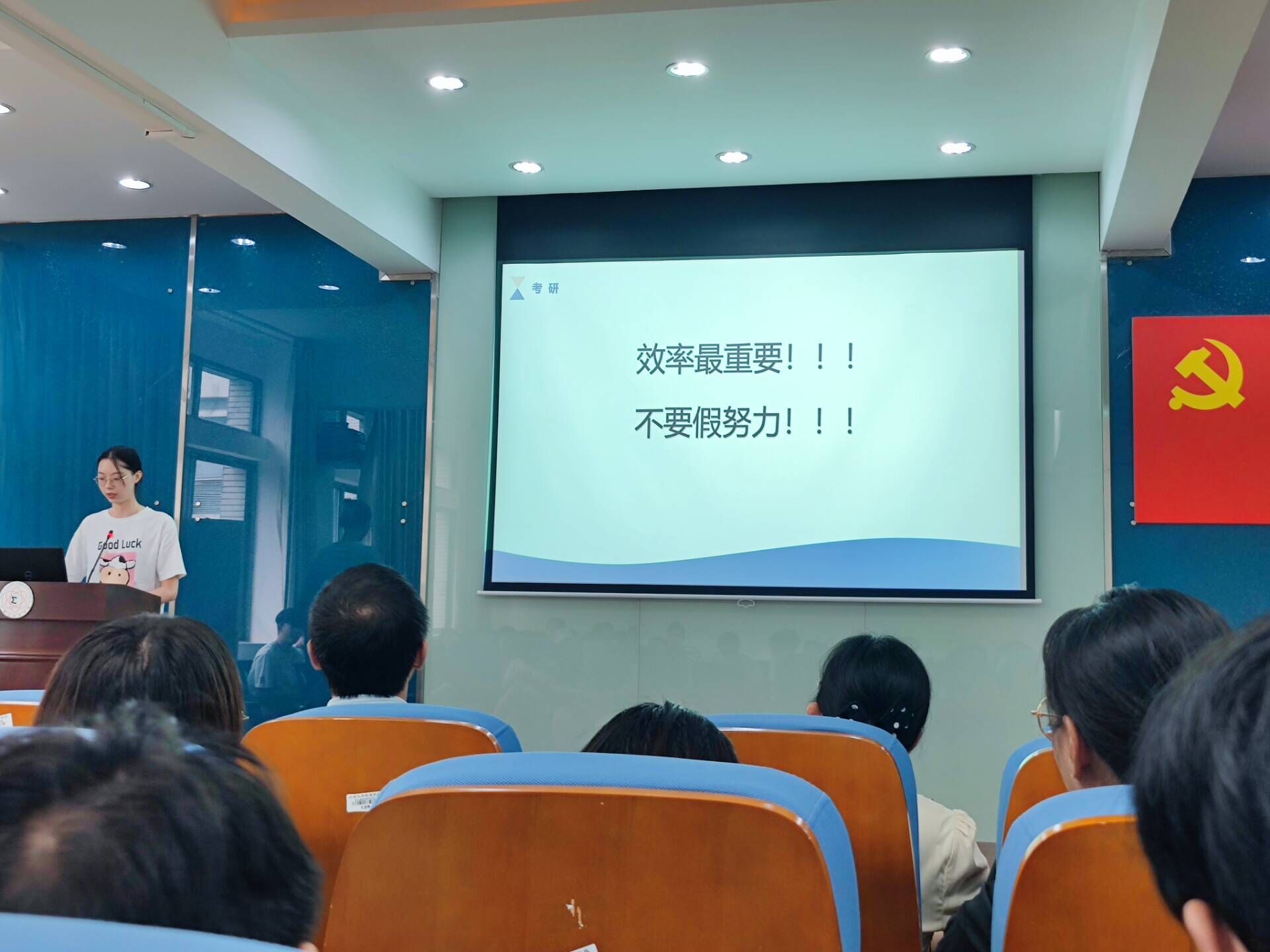 会上,陈晶就信息与计算科学专业的前景做了展望,并指导同学们如何理性规划未来。侯睿、郑蕾、石成鑫、程连元分别从考研公司选择、考研复习计划制定、个人时间管理、科研创新能力培养等方面做了交流。同学们纷纷表示收获颇丰,将在以后的学习和生活中更加端正自己的态度,做好合理规划,奋发向上。与会领导老师就即将到来的考研和就业等话题与同学们进行了深入交流。
