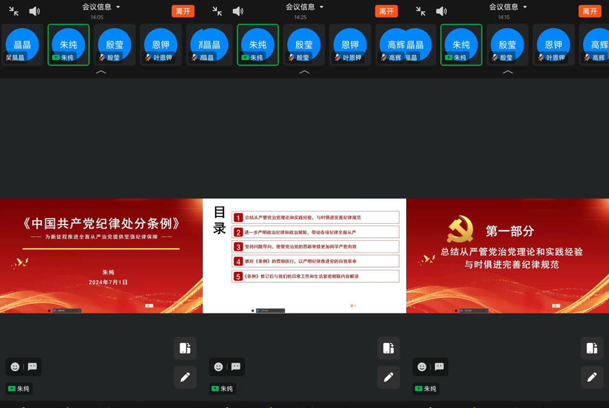 7月1日,物理实验中心教工党支部召开支部全体党员线上会议,党支部书记朱纯上《中国共产党纪律处分条例》专题党课。