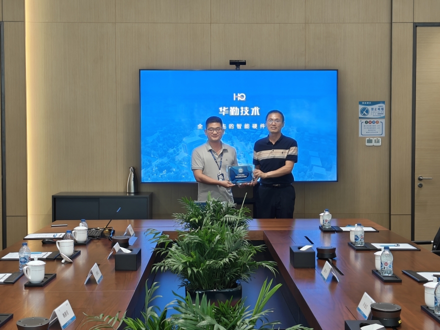 华勤技术无锡研发中心硬件部总监刘智远,人力资源经理毛明津和硬件部经理魏鹏程对师生们的到来表示热烈欢迎。随后在讲解员的带领下,大家参观了中心的展厅,了解了华勤技术的成立背景、发展历程和研发产品。座谈交流中,毛明津详细介绍了华勤技术公司的主营业务范围和技术研发方向,特别强调了公司在前沿技术领域的突破以及对人才的具体需求。董小平对公司背景、学科布局、教学成果、人才培养等进行了介绍,并强调了此次走访的主要目标,旨在了解企业需求,拓宽就业渠道,提升人才培养质量。双方着重探讨了校企之间在人才培养、项目研究等方面的合作潜能。最后董小平给华勤技术无锡研发中心颁发了“老员工就业最佳战略合作伙伴”授牌,刘智远希望能与williamhill英国官网进一步加强合作,并期待更多的williamhill英国官网学子能够加入华勤,为公司的发展注入新的活力。