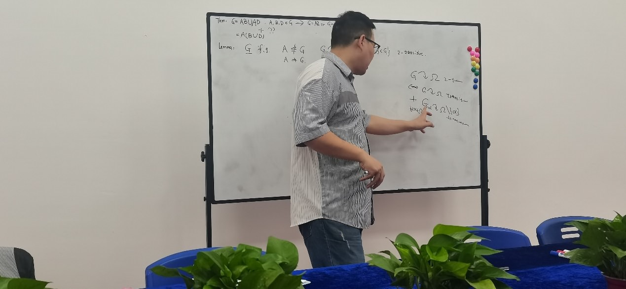 孟沆洋副教授介绍了与有限群子群乘积的并集相关的结果。首先从一个有趣的问题介绍了研究背景:有限群G能表示为子群乘积的并集,群G是否等于子群的乘积?报告中,孟沆洋副教授介绍了最近的研究成果,给出这个问题的条件描述,若群G是Sylow-塔群或是亚幂零群,则上述问题成立。