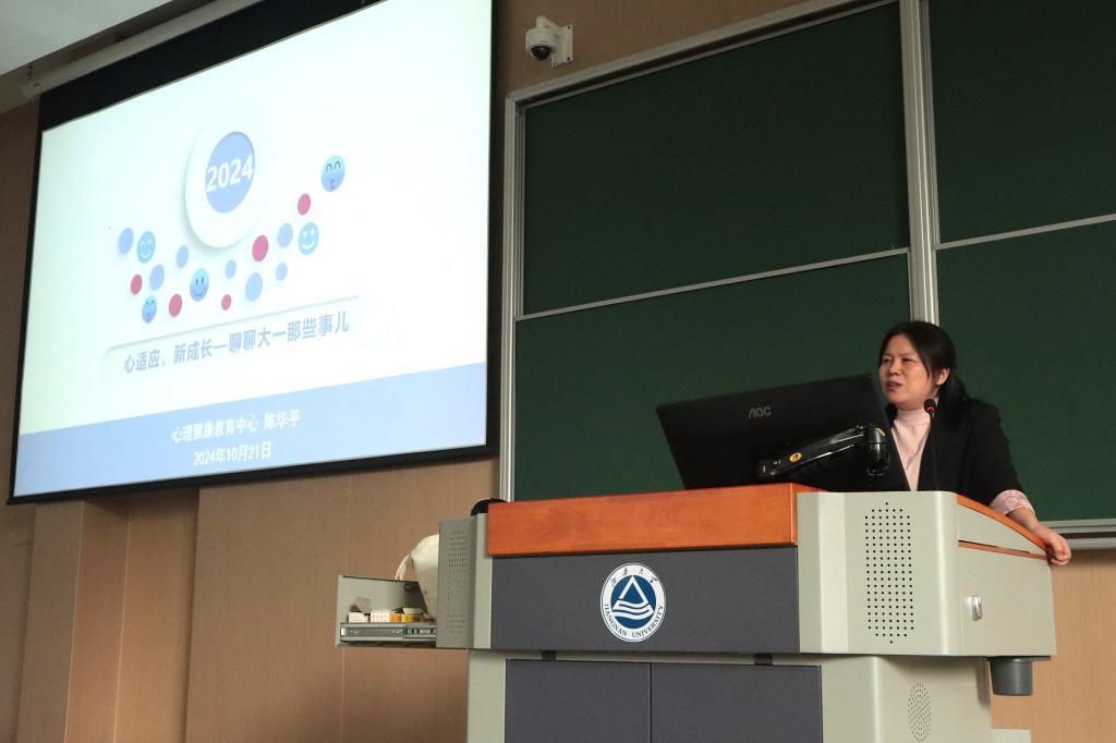 在公司心理中心的统一安排下,10月21日下午,williamhill英国官网“心适应,新成长——聊聊大一那些事儿”主题心理健康讲座在2A127举行。本次讲座由校心理健康教育中心陈华平老师主讲,williamhill英国官网全体2024级本科、预科新生参加活动。