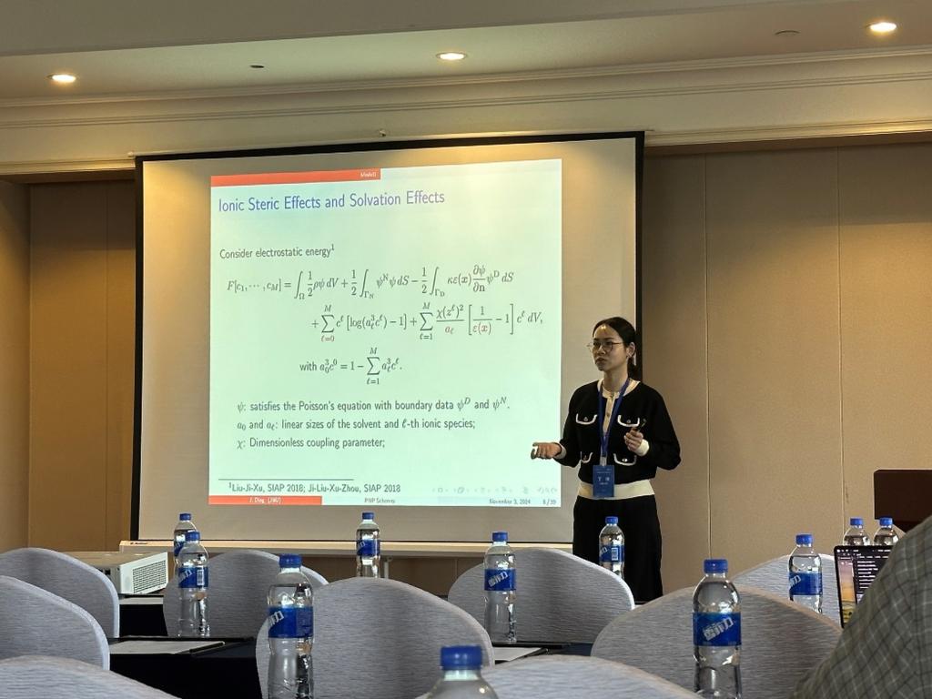 经公司、江苏省数学会层层推荐,丁洁博士获邀在计算数学分会上作了题为“Structure-preserving discretization for the Poisson-Nernst-Planck equations”的报告,详细介绍了Poisson-Nernst-Planck方程的应用背景和保结构的数值离散化方法,引起与会专家热烈讨论。会议期间,两位老师与其他高校的同行们进行了充分的学习和交流,为推进一步提高公司数学学科的知名度起到了积极的推动作用。