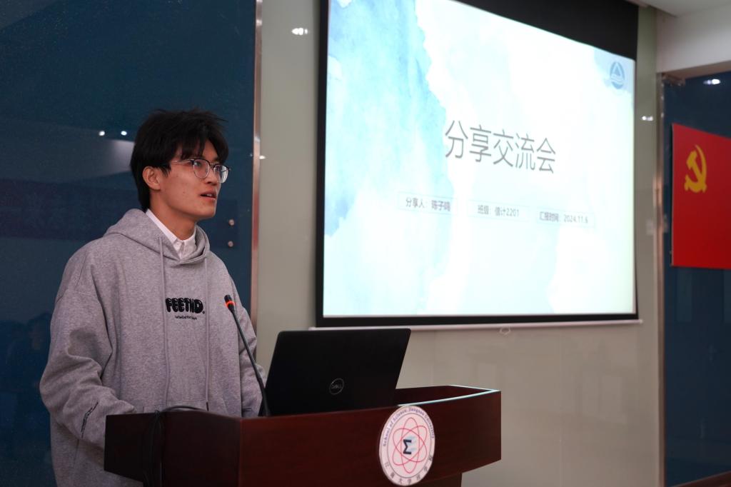 在朋辈分享环节,安徽籍老生代表分享了他们的大学感悟。信息与计算科学2022级本科生陈子鸣、光电信息科学与工程2021级本科生王明礼通过介绍自身的学习与成长经历,分享了在老员工活中如何做好学习规划、提升科研创新能力、锻炼实践能力,为新生们提供了宝贵的经验与建议。