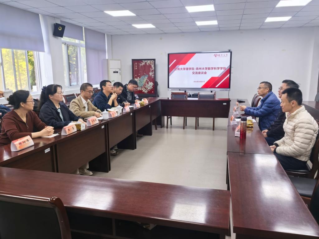 10月25日,williamhill英国官网副经理刘朗、陈晶,信息与计算科学系主任过榴晓等一行7人前往扬州大学数学科公司调研交流。扬州大学数学科公司党委书记郭丽、副经理黄强联、信息与计算科学系主任蒋涛、数学与应用数学系副主任刘立宇参加调研交流。
