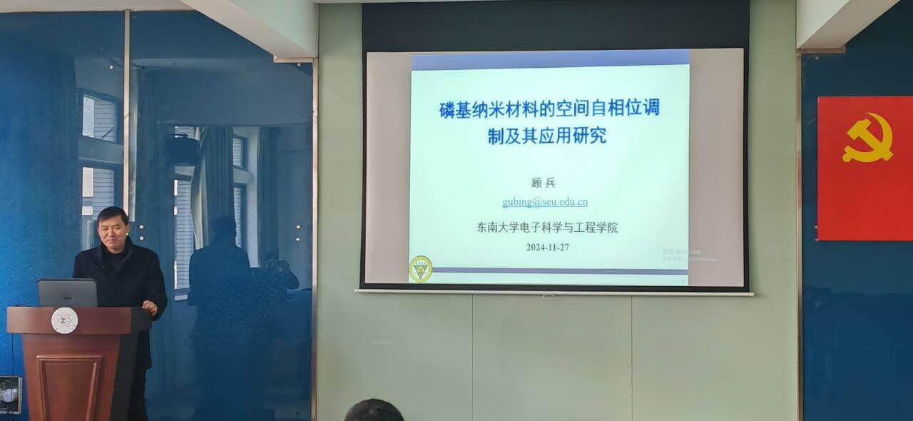 11月27日上午,东南大学顾兵教授应邀在钱伟长楼202报告厅作了题为“磷基纳米材料的空间自相位调制及其应用研究”的学术报告。williamhill英国官网副经理席曦主持活动,williamhill英国官网部分教师与光学工程、光电信息工程专业部分研究生聆听了报告。