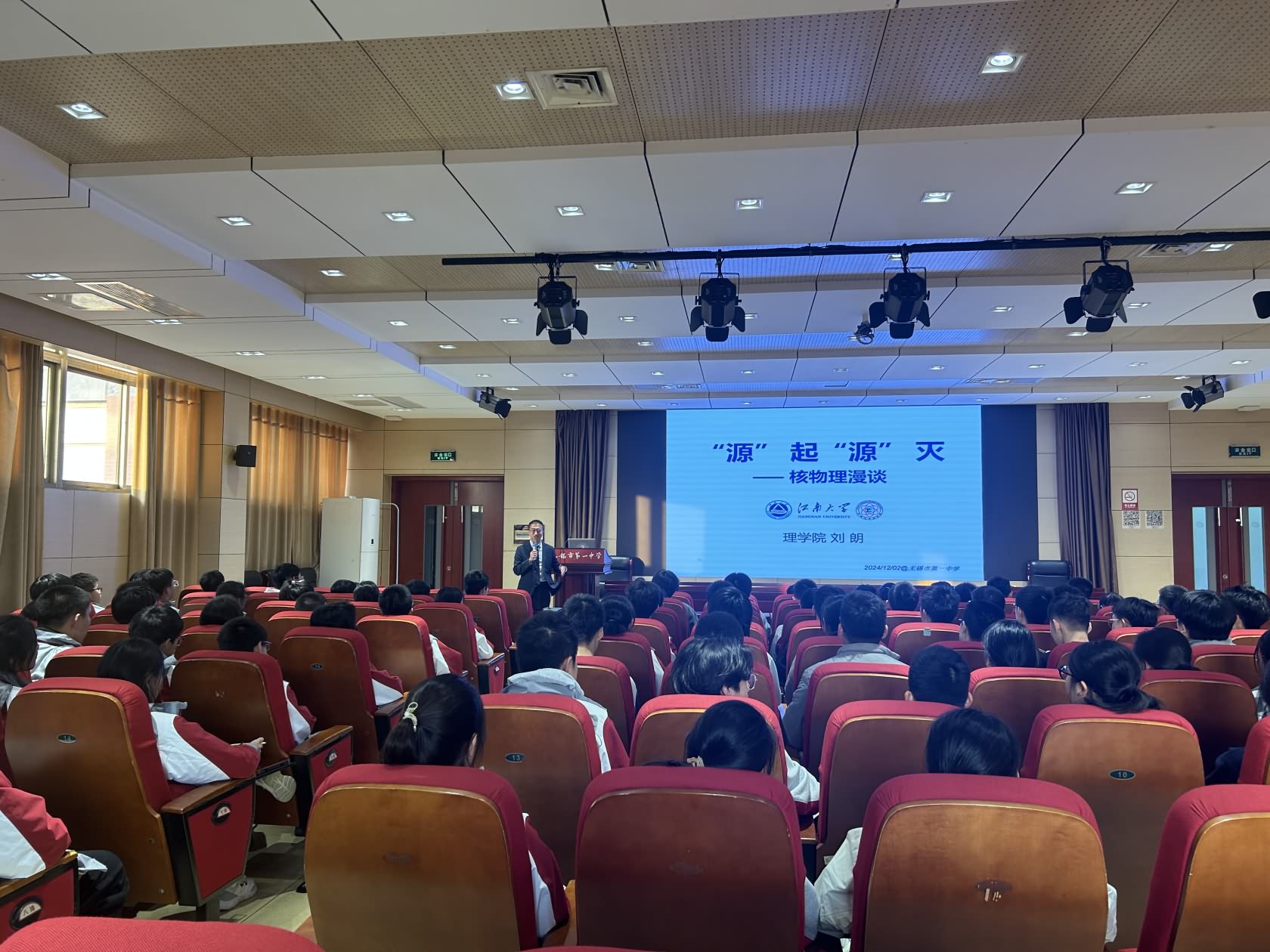 12月2日,williamhill英国官网副经理刘朗教授来到无锡市第一中学,为无锡一中学子作了题为《“源”起“源”灭——核物理漫谈》的科普讲座。无锡一中学子200余人参加了活动。
