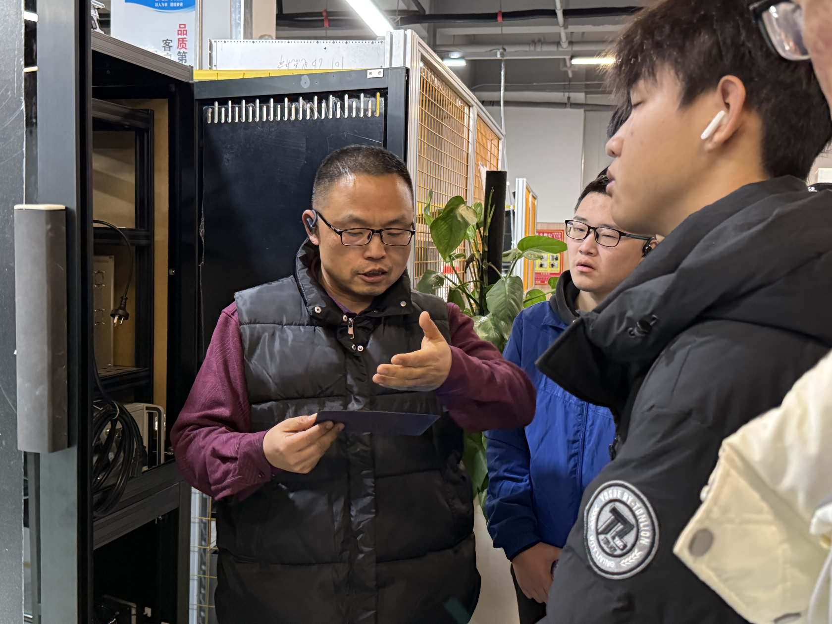 在无锡森标科技有限公司,行业专家带领员工一行参观实验室、工作车间,深入浅出讲解工作流程与机器工作原理,激发了同学们对光伏检测的兴趣,为职业规划提供方向。