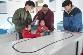 寻迹小车演示是一个结合了机械和计算机科学的实验。小朋友们看到一辆小车在没有进过遥控的情况下,沿着一条特定的路径行驶。讲解员解释了小车是如何通过传感器识别路径,并利用计算机程序来控制方向的。这个实验不仅让小朋友们对自动驾驶技术有了初步的认识,还激发了他们对计算机编程的兴趣。