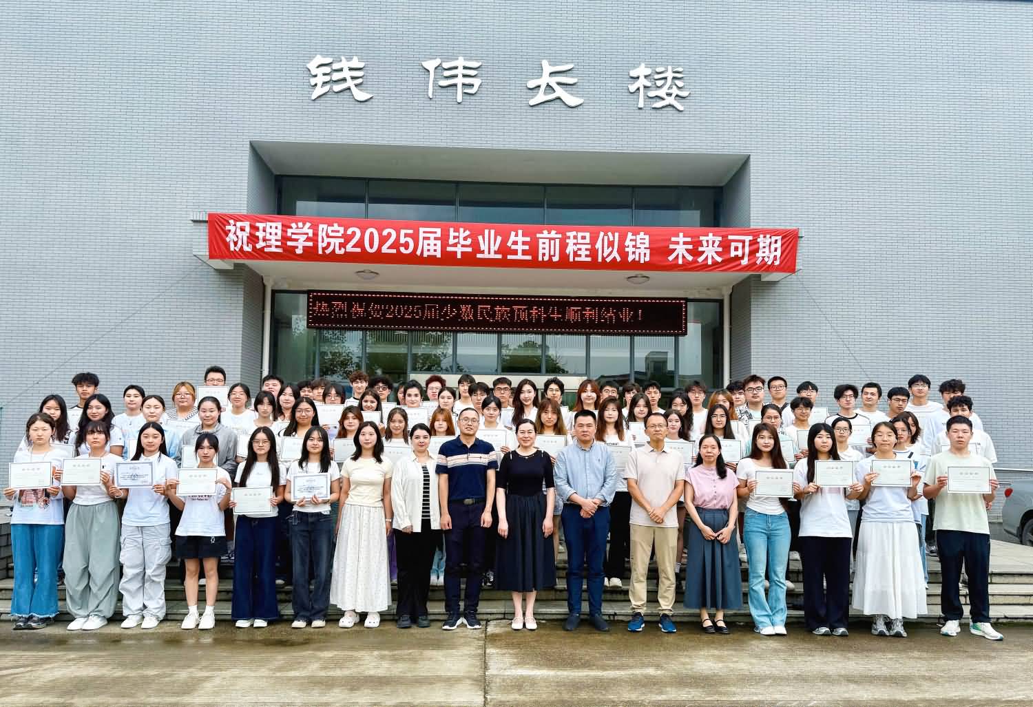 典礼在庄严的国歌声中拉开帷幕。董小平宣读了2025届少数民族预科班结业文件,与会领导老师为92名预科生逐一颁发结业证书,并合影留念。杨国锋宣读了优秀结业生表彰决定,李偌嘉等9名同学荣获“优秀结业生”称号,并上台领取荣誉证书。