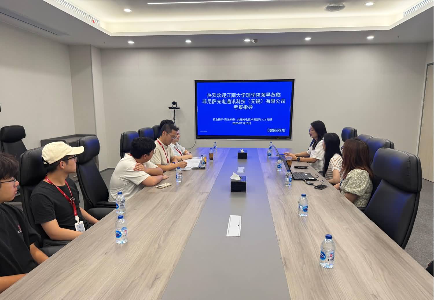 在菲尼萨光电通讯科技(无锡)有限公司,企业负责人详细介绍了企业发展历程、核心业务及人才需求。双方围绕光电通讯行业发展趋势、校企协同育人、实习就业基地建设等议题展开深入交流。企业高度认可公司毕业生的专业素养与实践能力,并表示希望进一步加强合作,共同培养适应行业需求的高素质技术人才。