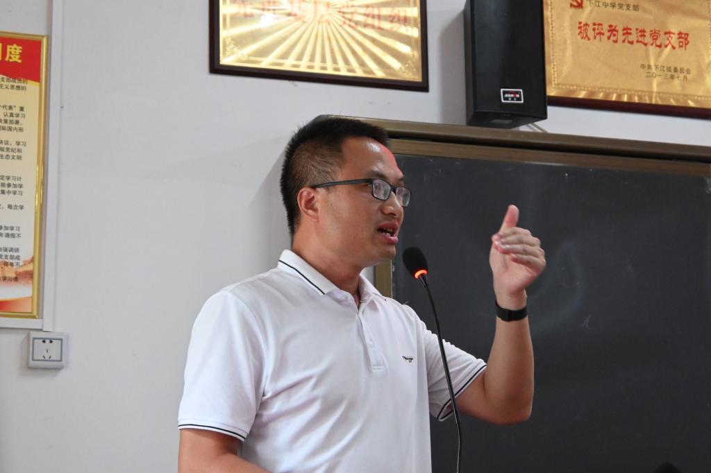 “蓝阶梯”团队指导老师胡清元老师与“江南马先声”支教团王圣舟老师作为代表发言。胡清元老师首先对校方的热情接待表示了由衷的感谢,并以一份精心准备的PPT为依托,向下江中学师生展开了一场别开生面的互动交流。从“人定胜天”介绍自己求学的心路历程,启示在座员工无论身处何种境遇,努力大于一切;同时鼓励大家在网络信息的“精准投送”下,也要好学若饥,谦卑若愚,既不要盲目从众,也不要骄傲自大;最后以不进则退为结语,启发同学们人生道路的选择是多种多样的。