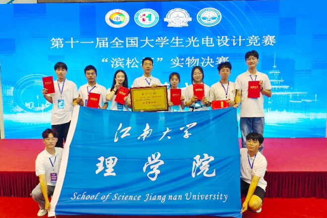 由赵雍、胡博伦老师指导,光电信息科学与工程专业本科生蔡宇婷、左欣格、黄鑫研组成的“海底小纵队”团队获“酒精浓度的非接触测量”赛题全国二等奖,作品《酒精浓度测试》基于红外光吸收的原理,使用1310 nm半导体激光器发出激光,通过光纤进入空间光装置,接着使用一个准直透镜用来产生平行光,透镜后放置含有待测样品的比色皿,通过测量经比色皿中液体吸收后的光功率,就可以得到酒精的浓度。
