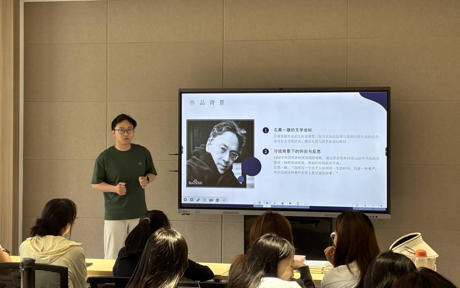 活动分为书籍分享会和书香接力赛两个部分,现场书香与活力交织。在书籍分享环节,10名同学化身“领读人”,展开精彩分享。有的同学借助精美的PPT和短视频,引领大家走进余华的《十八岁出门远行》,感受主人公在荒诞现实中经历的孤独与成长,领悟成长路上的挫折与希望;有的同学分享《长日将尽》,以书中细腻而深沉的情感与对过往岁月的反思,让大家体会到人生的意义与价值。他们或激情澎湃地讲述书中跌宕起伏的情节,或娓娓道来阅读时的深刻感悟,将经典著作的思想内涵与个人成长体验紧密结合。分享者真挚的表达引发了现场共鸣,掌声此起彼伏。