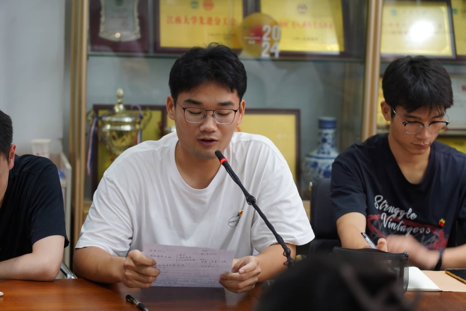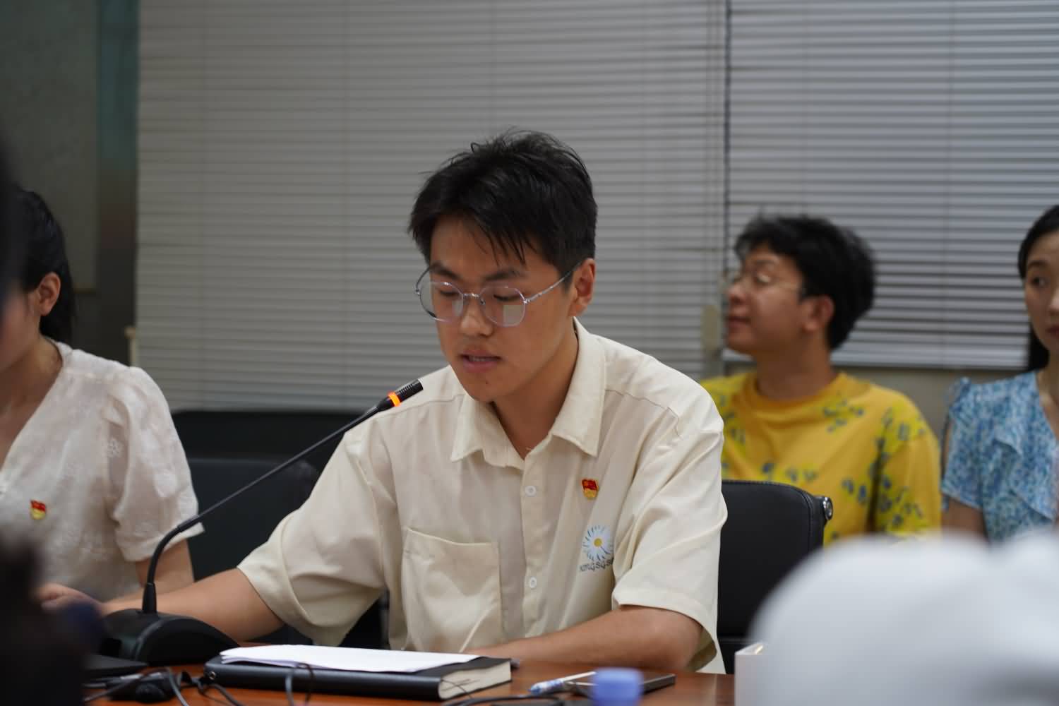 全体与会党员观看了《致敬奋斗者》。影片中,航空发动机研发团队在“卡脖子”技术领域攻坚克难,青年工程师们用代码重构城市智慧脉络,他们以“功成不必在我”的胸怀和“功成必定有我”的担当,诠释了创新奋斗的时代内涵。左欣格、田高雯和王振源三位支部成员代表结合参加科创活动的奋斗经历,表达了投身科技创新、探索学术前沿的坚定信念。