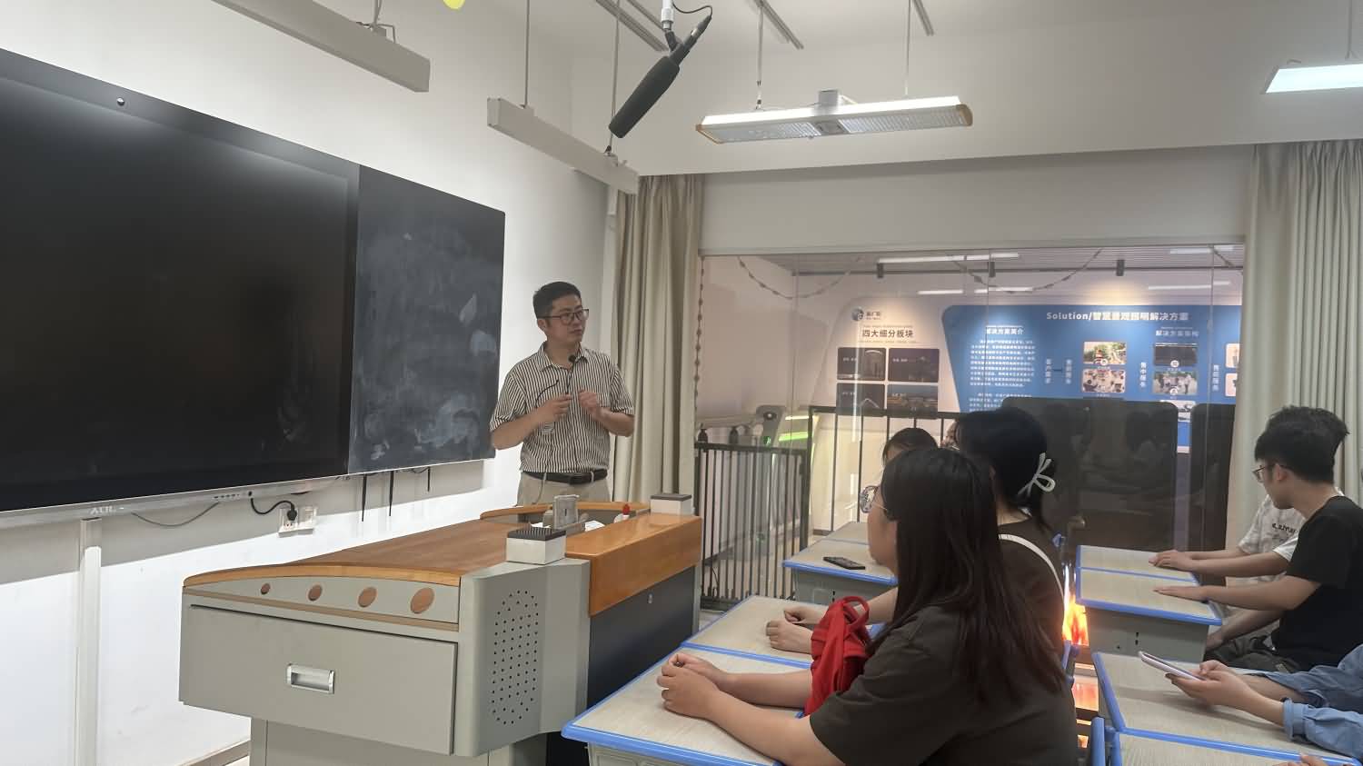 公司代表胡锡兵热情接待了师生一行,并向师生介绍了企业研发的光产品及所获荣誉。他详细介绍了企业在教室环境、大型户外建筑及室内办公照明等实际环境中研发的相关光产品,利用LED动态变化技术和空气净化技术,可提供良好舒适的光环境。