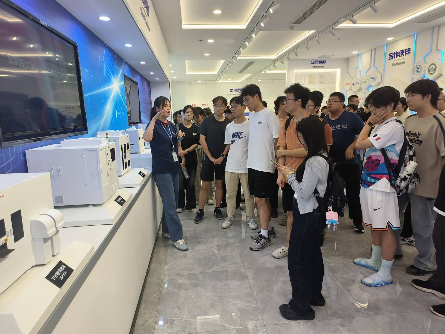 公司代表严婷婷、肖艳热情接待了师生一行,并对大家的到来表示热烈欢迎。在公司的安排下,师生们首先参观了企业展厅,系统了解了公司的核心业务布局、技术发展路线与关键技术进步历程,并实地考察了工厂生产车间及先进设备。